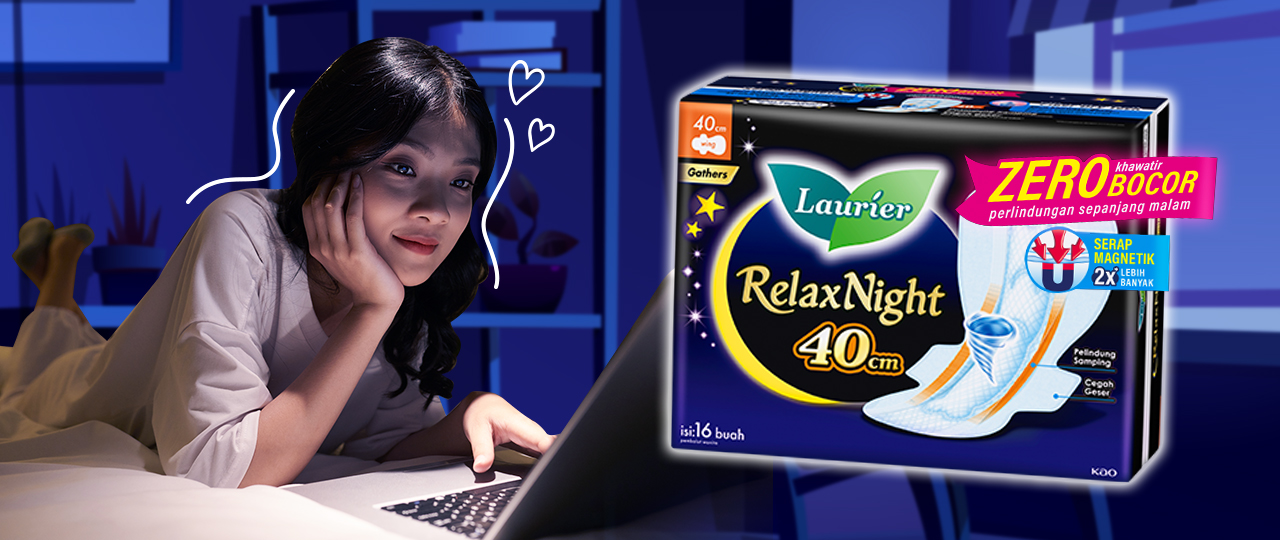 Saat menstruasi sedang deras-derasnya, kamu bisa menggunakan Laurier Relax Night. Laurier Relax Night dengan Teknologi Serap Magnetik, serap 2x lebih banyak, membuat darah terhisap kuat, terkunci rapat, dan tidak kembali ke permukaan. Laurier Relax Night juga dilengkapi Fiber Dry Tech dengan permukaan lembut, berpori, cepat menyerap, dan kering maksimal.