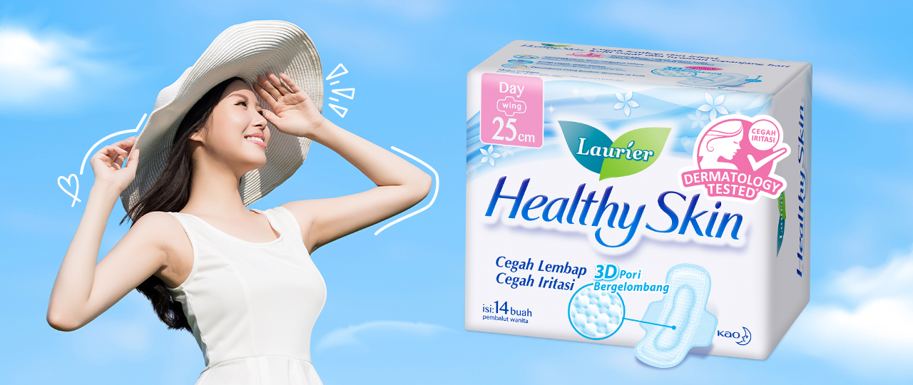 Untuk menjaga kesehatan vagina, menggunakan pembalut yang tepat selama menstruasi juga sangat penting. Laurier Healthy Skin pembalut pertama yang teruji klinis menjaga kesehatan kulit area kewanitaan. Dengan inovasi baru 3D Pori Bergelombang yang meningkatkan 80% sirkulasi udara karena permukaan pembalut tidak bersentuhan sepenuhnya dengan kulit area kewanitaan dan menyerap cairan seketika, sehingga permukaan tetap kering serta tidak terasa lengket di kulit.