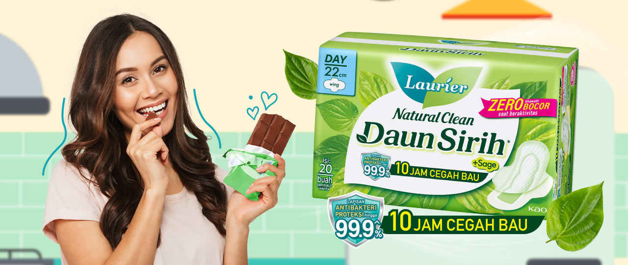 Selama menstruasi, kamu bisa gunakan Laurier Daun Sirih yang memiliki Lapisan Antibakteri Proteksi hingga 99.9%. Pembalut daun sirih Laurier dilengkapi kandungan daun sirih dan ekstrak daun sage yang melawan pertumbuhan bakteri, jamur, serta 10 jam cegah bau. Laurier Daun Sirih juga telah allergy tested, teruji klinis tidak menimbulkan iritasi dan alergi sehingga aman dan nyaman digunakan.