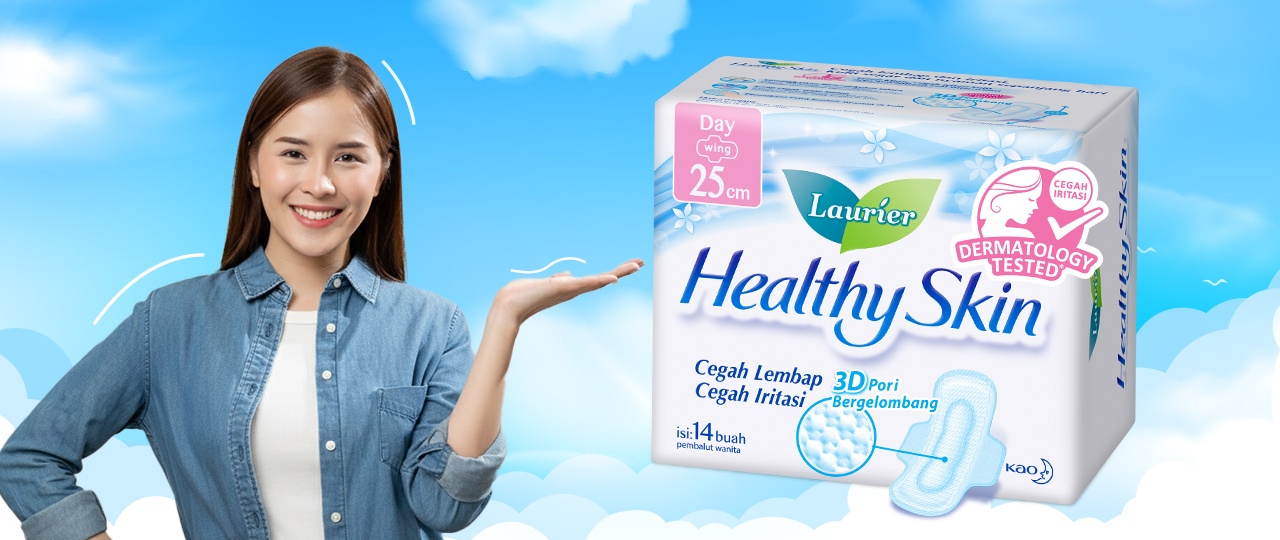 Selama periode menstruasi kamu bisa menggunakan Laurier Healthy Skin, pembalut pertama yang teruji klinis menjaga kesehatan kulit area kewanitaan. Dengan inovasi baru 3D Pori Bergelombang yang meningkatkan 80% sirkulasi udara karena pembalut tidak menempel sepenuhnya pada permukaan kulit, serta memiliki permukaan yang extra lembut dan nyaman di kulit.Cegah Lembap, Cegah Iritasi dengan Laurier Healthy Skin.