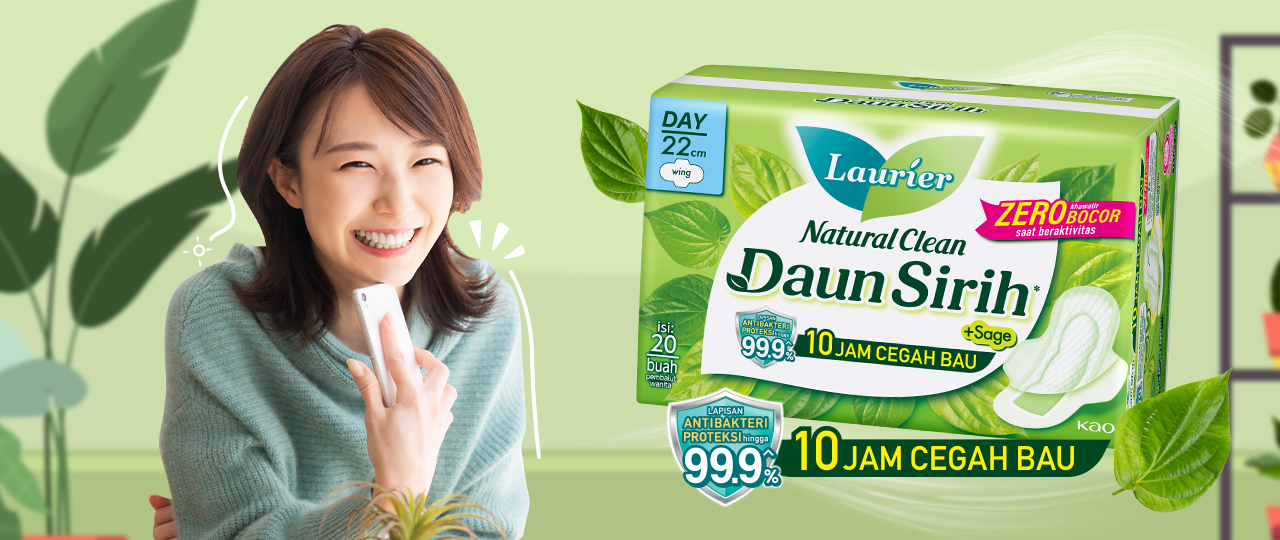 Selama menstruasi, kamu bisa menggunakan Laurier Daun Sirih yang memiliki Lapisan Antibakteri Proteksi hingga 99.9%. Pembalut daun sirih Laurier dilengkapi kandungan daun sirih dan ekstrak daun sage yang melawan pertumbuhan bakteri, jamur, serta 10 jam cegah bau.