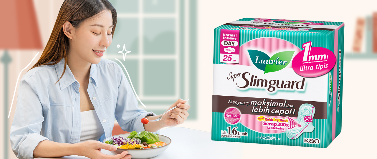 Saat menstruasi sedang deras, kamu bisa pakai Laurier Super Slimguard. Pembalut ultra slim dengan Teknologi Lapisan Serap Ultra Tipis 1mm dan Quick Dry Sheet serap 200x lebih kering, permukaan lebih lembut. Nyaman dan fleksibel mengikuti bentuk tubuh, Tak Terasa Pakai Pembalut. Tetap nyaman beraktivitas setiap menstruasi dengan Laurier Super Slimguard!